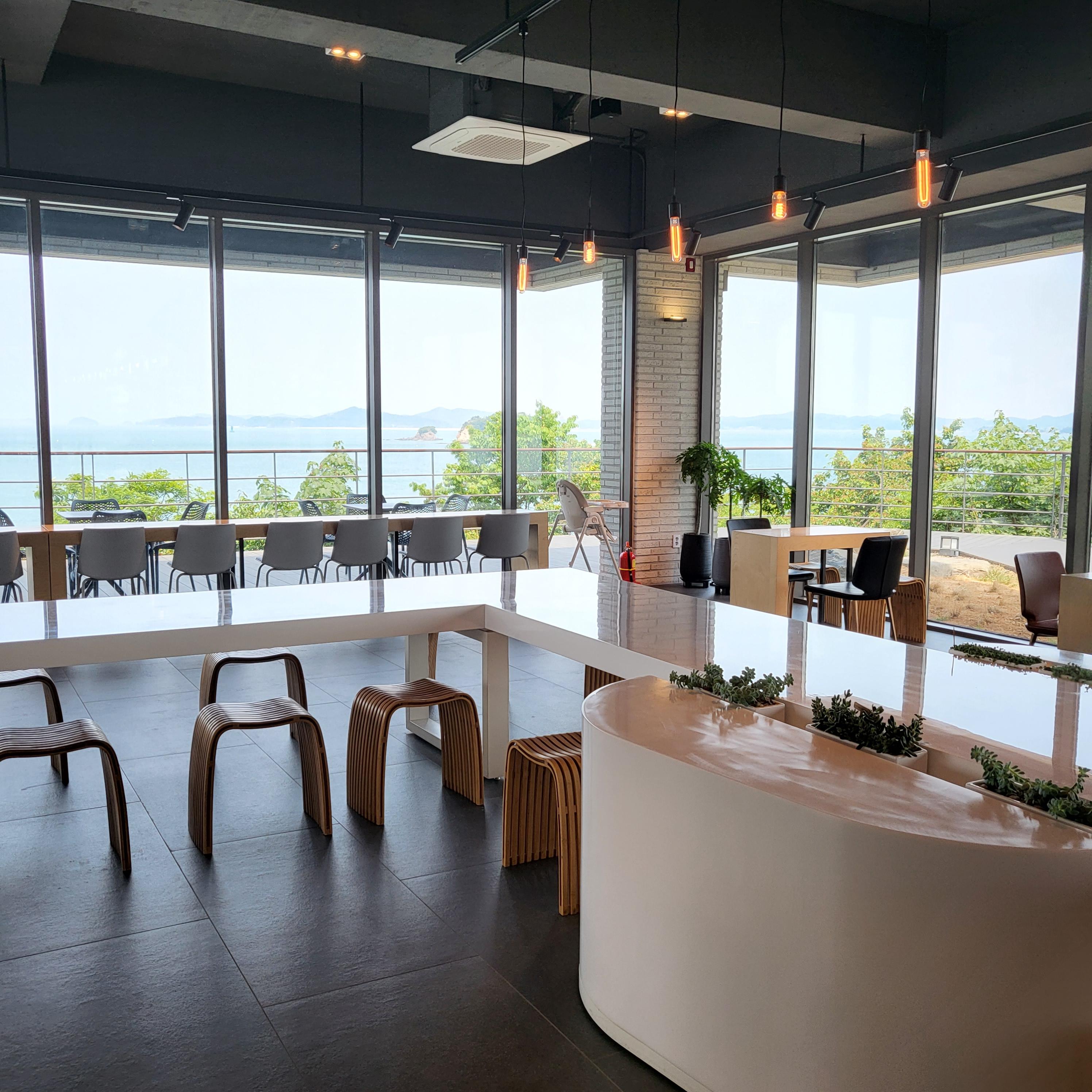 어디에 앉아도 커다란 창으로 바다를 볼수 있다