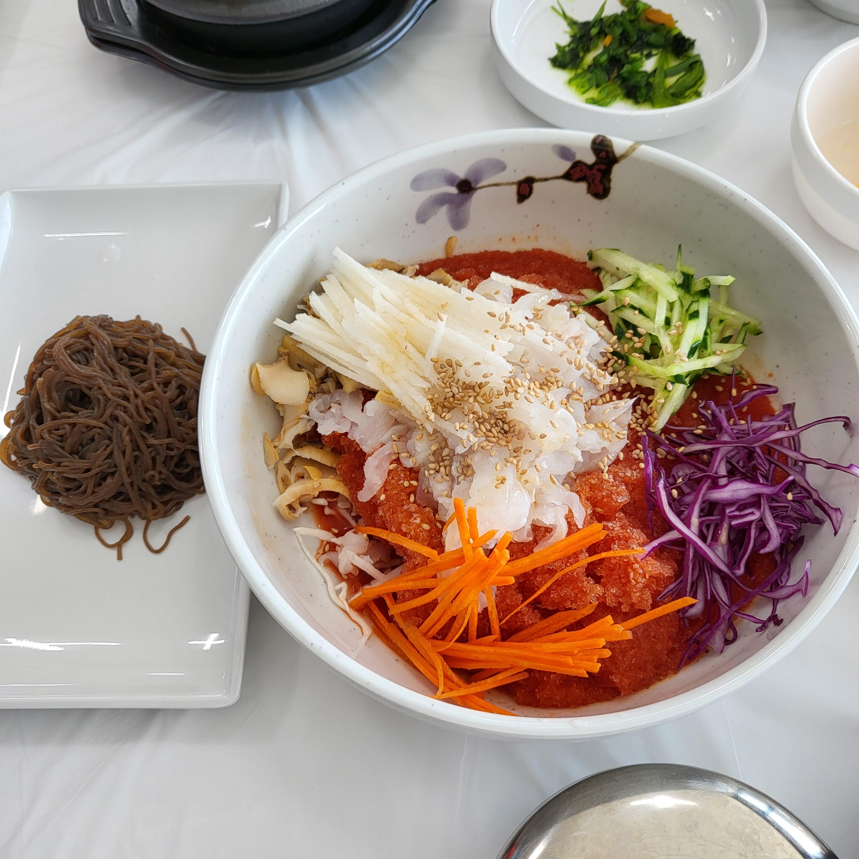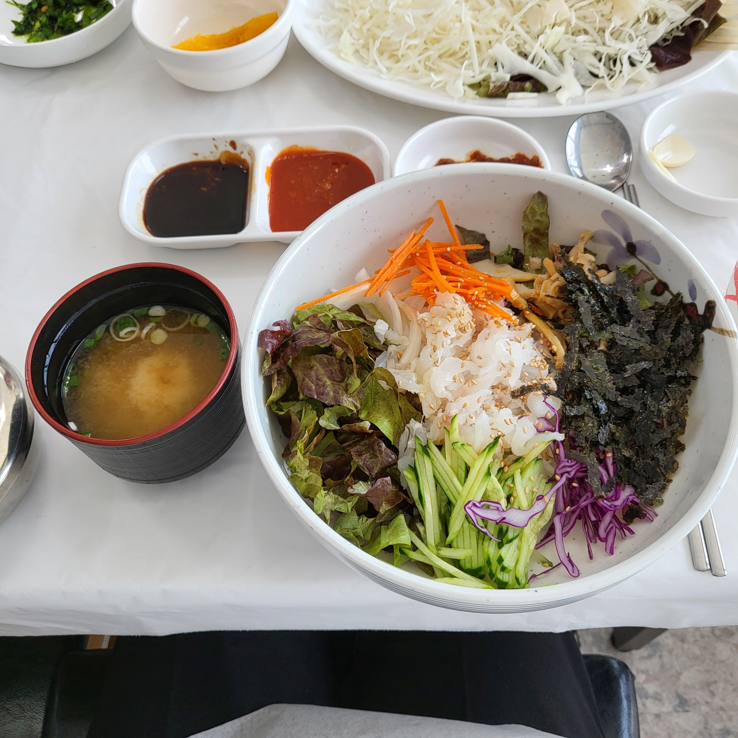 시원한 물회와 고소한 회덮밥 둘다 재료가 신선하고 여러가지 야채와 어우러져서 씹는 맛도 좋고 너무 맛있다
