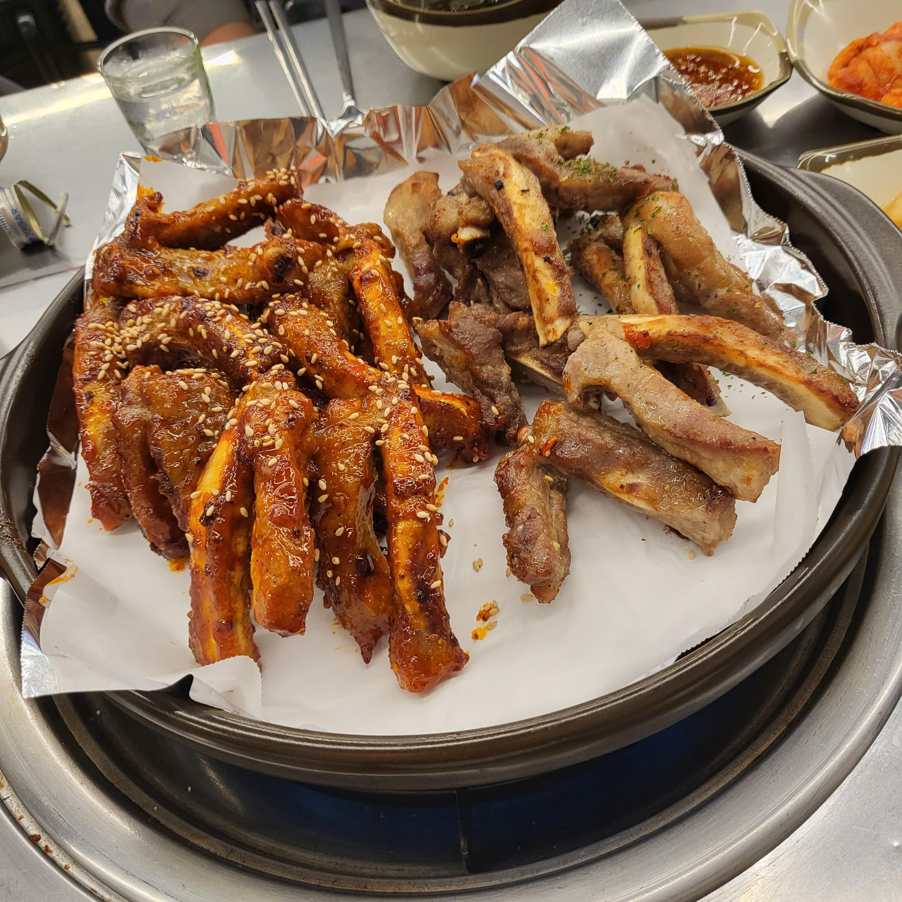 담백하고 고소한 구이구이 쪽갈비와 매콤한 감칠맛이 좋은 매운쪽갈비 둘다 맛있어요 소주 안주로 딱 좋아요