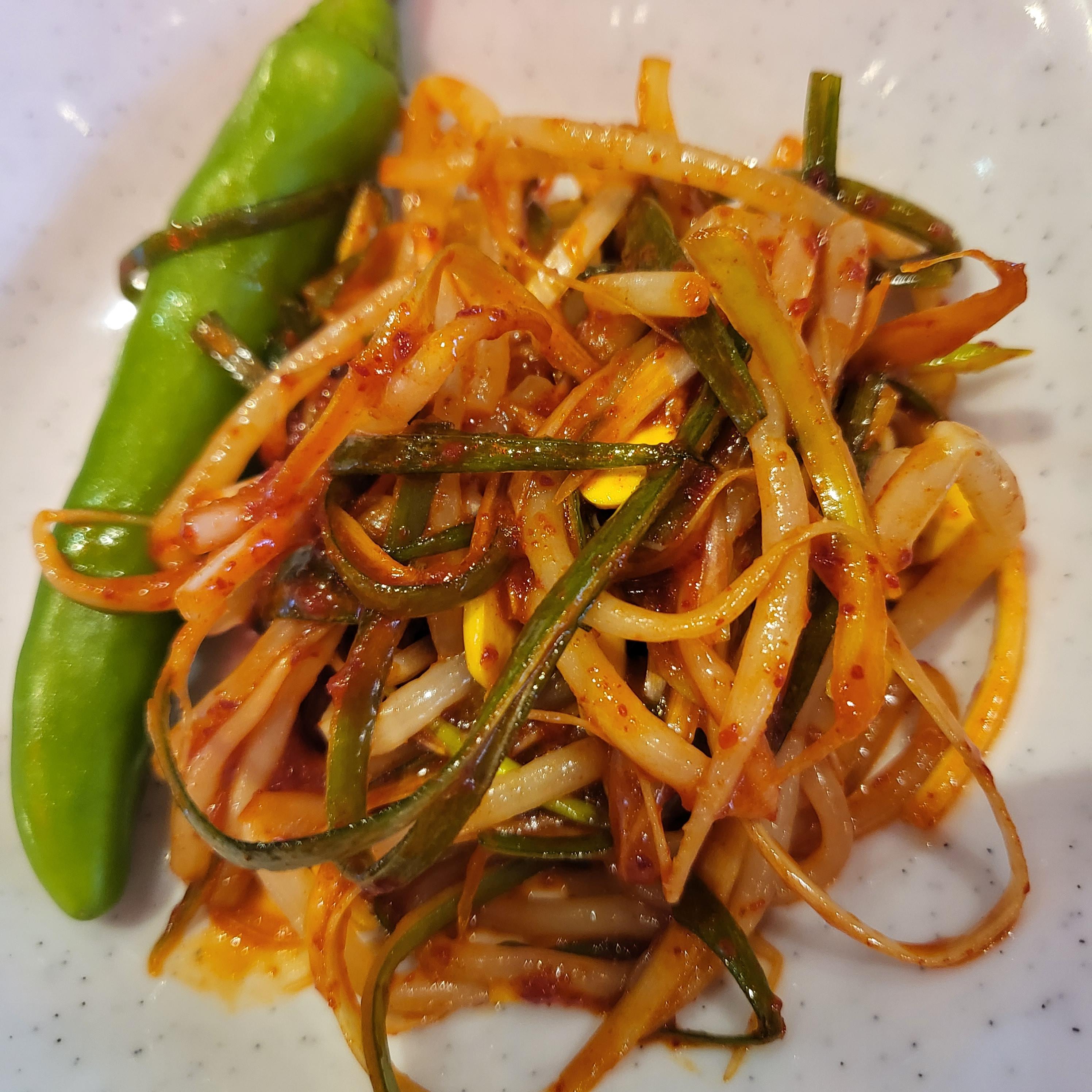 연탄집에서 특이한점은 파채무침에 쫄면이 들어간다는 점이에요 쌈쫄면이라는 메뉴인데 별미에요 추가 주문도 할수 있어요