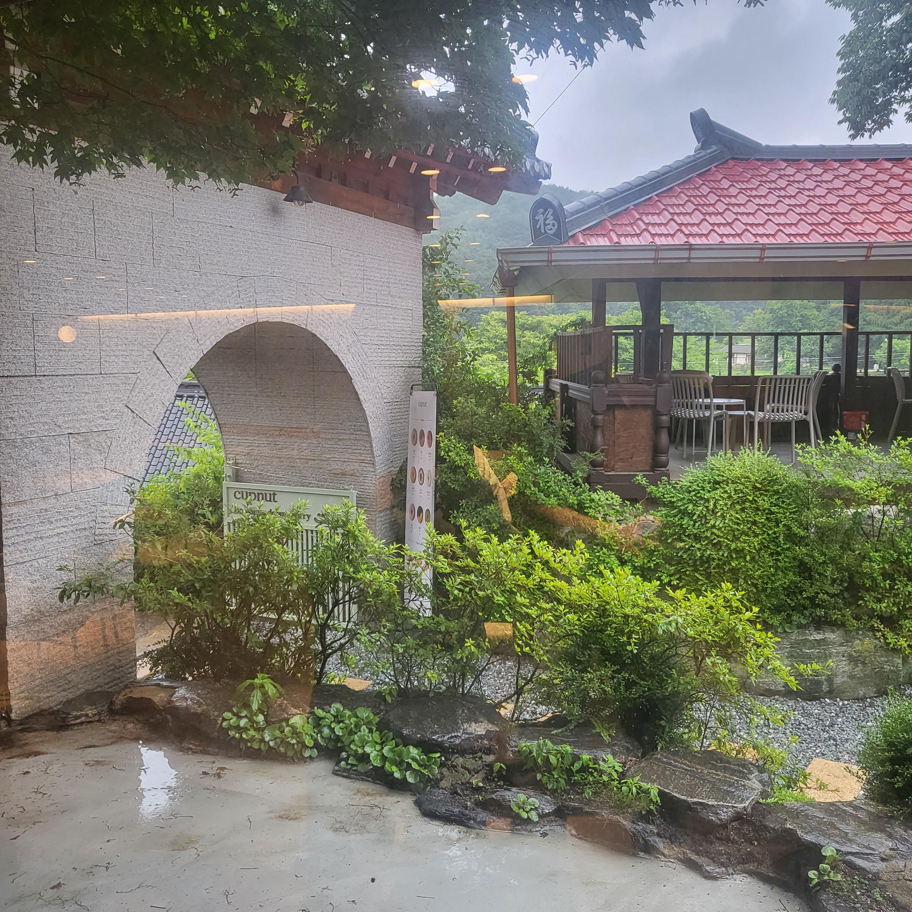 청주 상당산성 신상카페 도넛맛집 컵넛에 다녀왔어요 마침 비가 많이 오는 날이라 갈까말까 망설였는데 컵넛은 한옥카페라 비오는 풍경이 운치있고 멋지더라구요 인기카페라 그런지 비가 많이 내리고 있었지만 카페에는 손님들이 많았어요