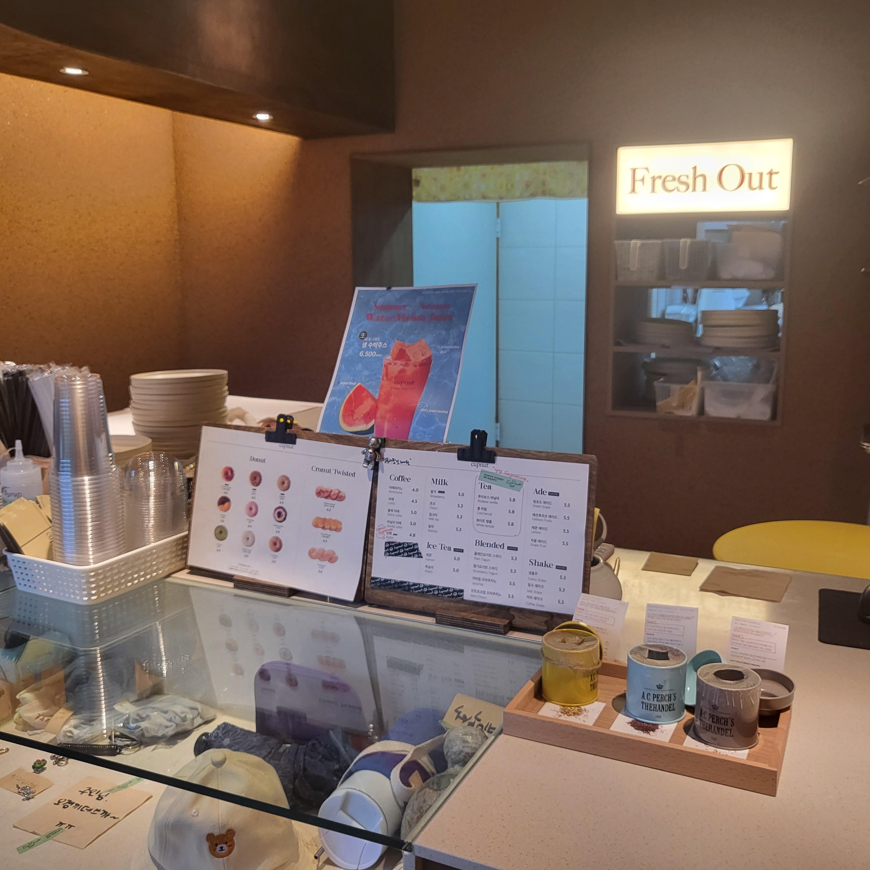 입구에 야외 카페 공간도 있어서 날씨가 좋은 날에는 야외 테이블에서 도넛과 커피를 마셔도 좋겠어요