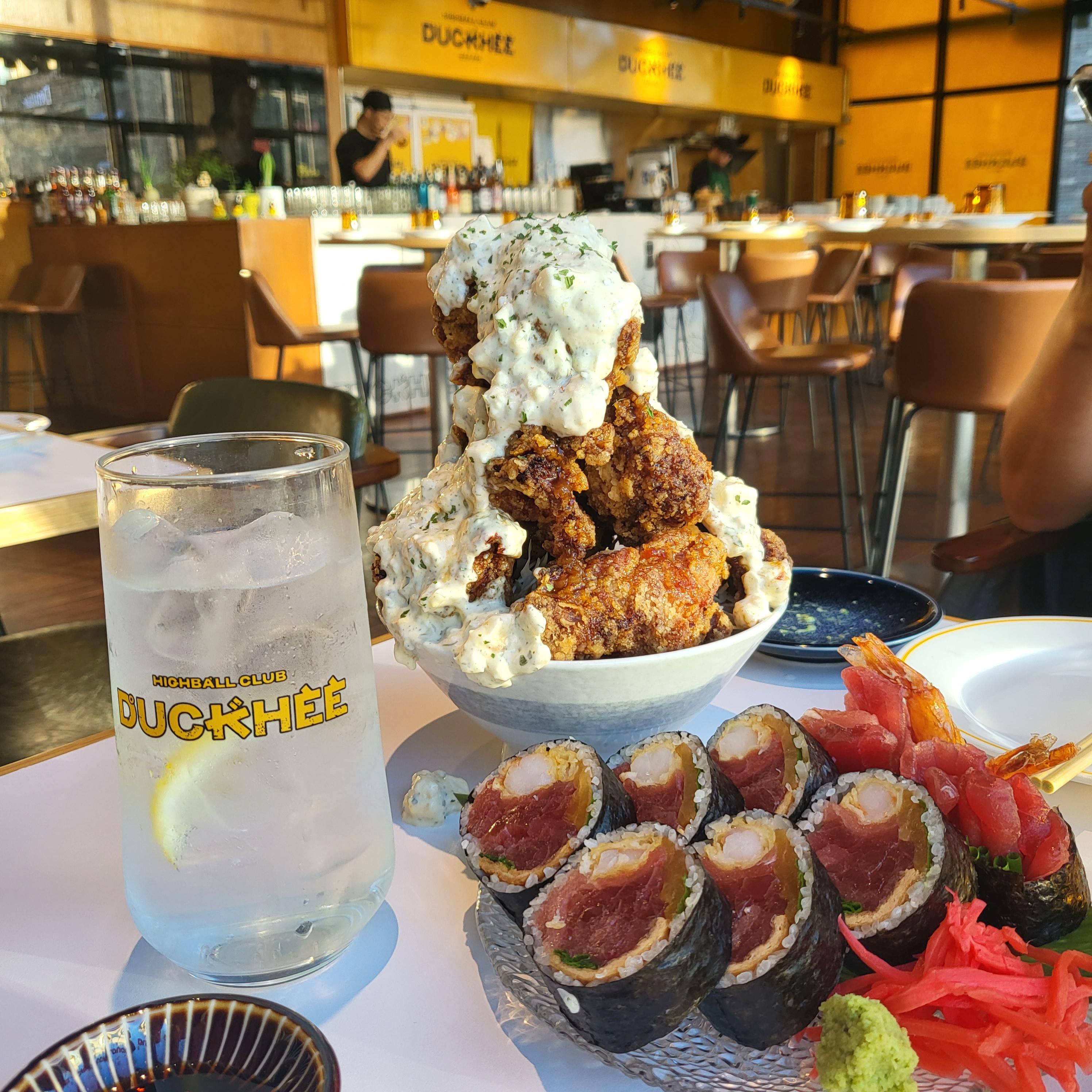 동남지구 덕희하이볼클럽의 하이볼과 참치후토마키, 치킨난반은 비주얼도 좋고 맛도 좋아요