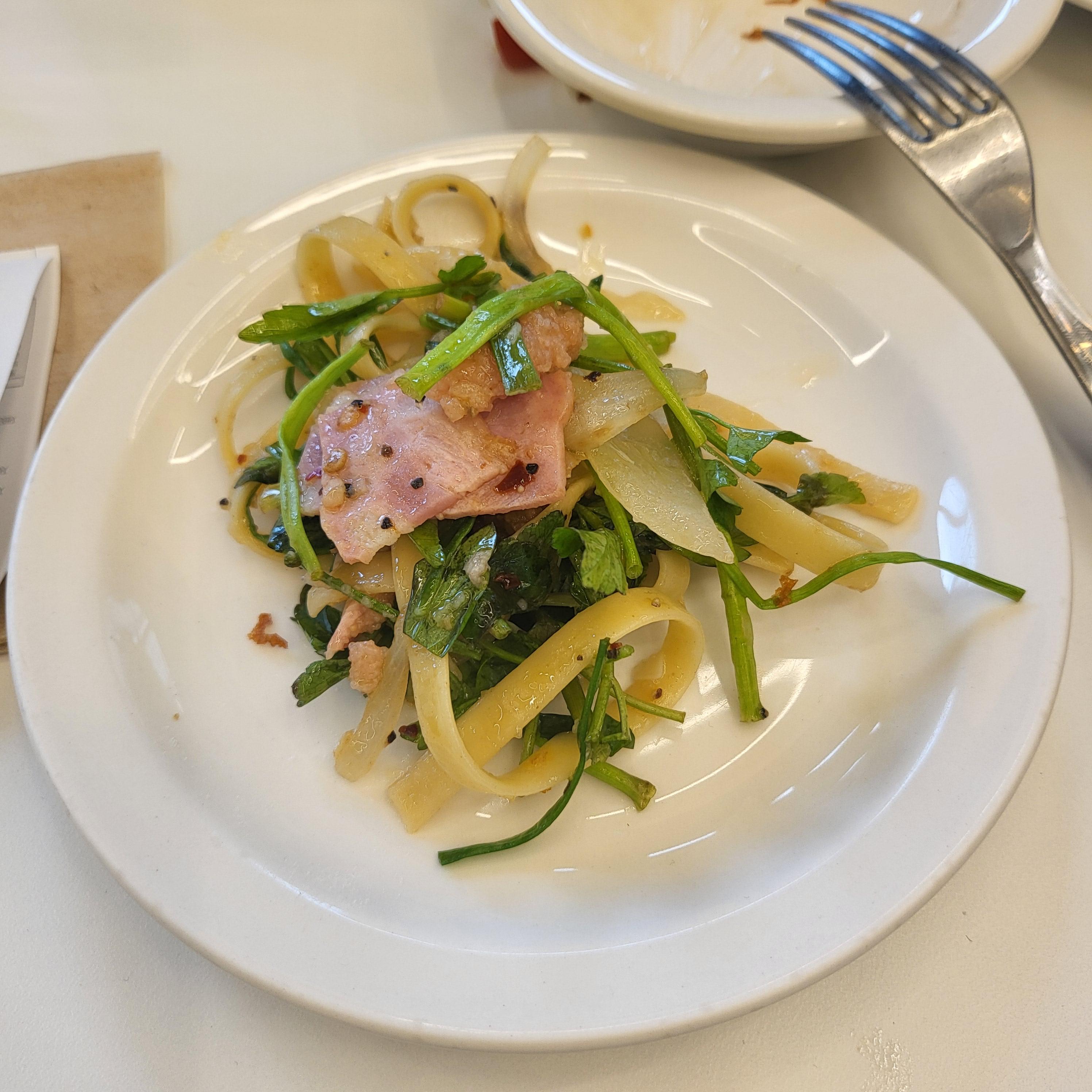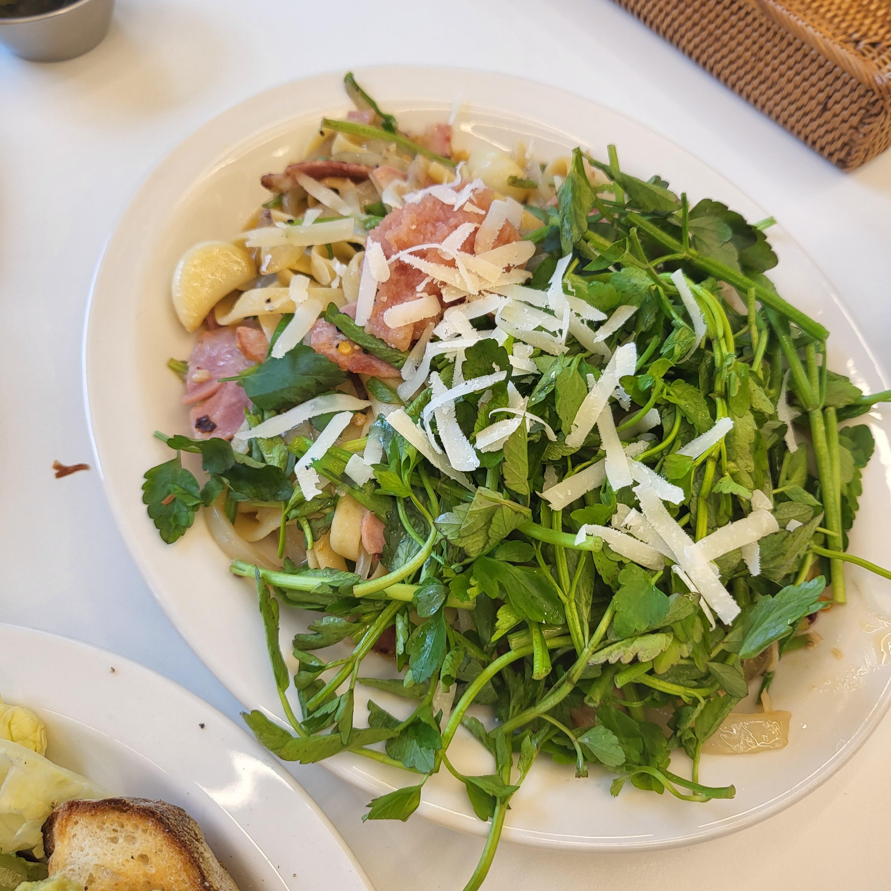 명란 파스타에 미나리를 잔뜩 올려 먹으면 신선하고 향긋해서 맛있어요